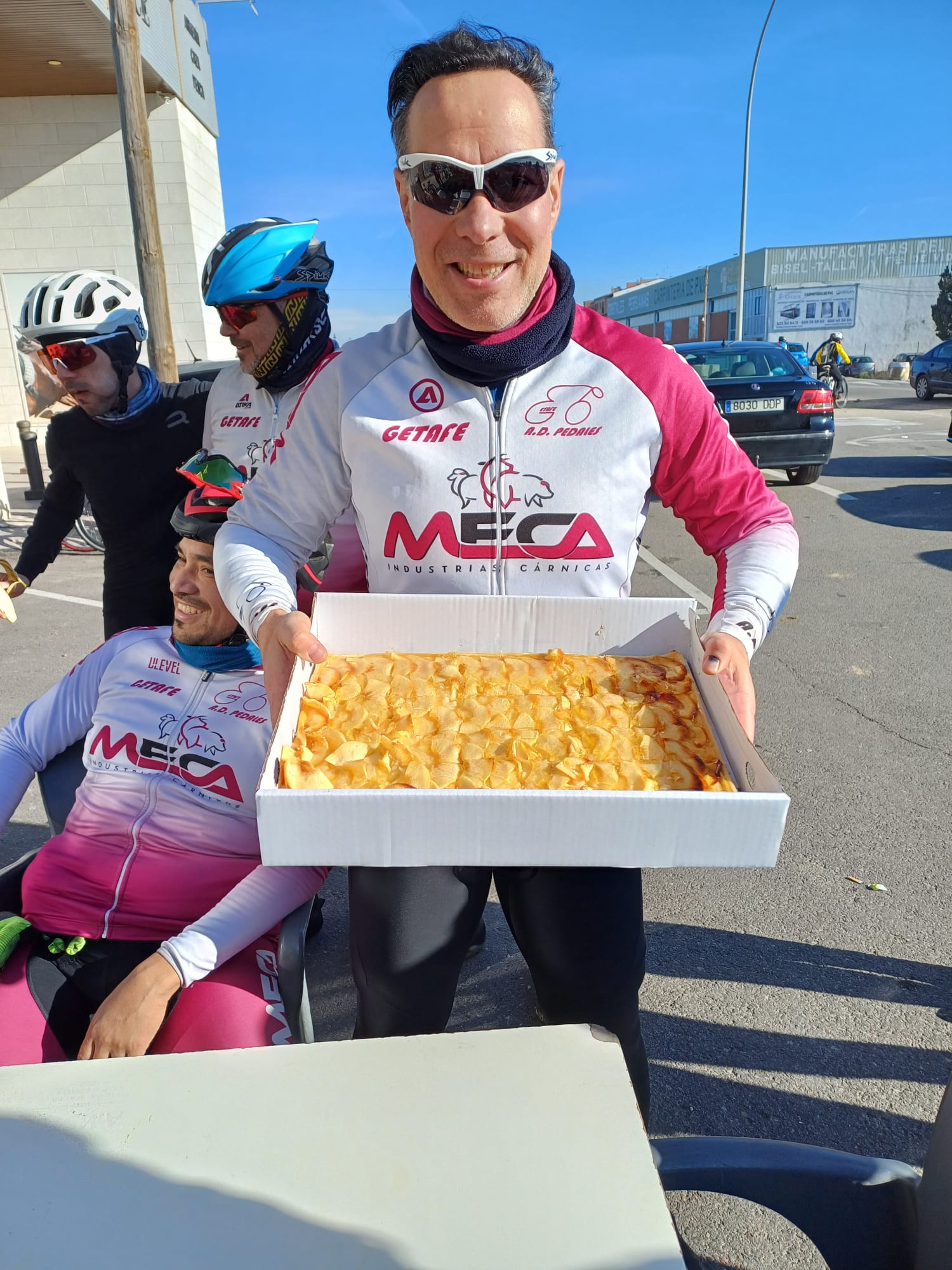 Una vez pedidos los cafés el socio David Manzanilla nos obsequia con una tarta de manzana riquísima, haciendo honor a su apellido.